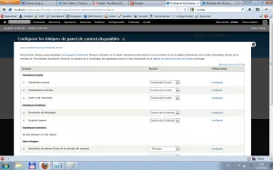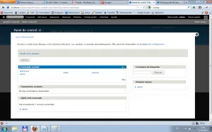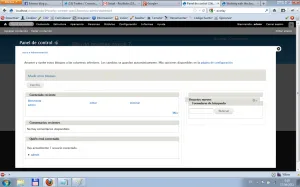 La idea del panel de control es poder disponer de un vistazo toda la información relevante al sitio web drupal. Para ello es altamente configurable, mediante el enlace denominado “Personalizar panel de control”, con el que veremos un interfaz sencillo de personalización similar al siguiente…
