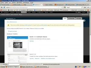 Como se puede observar en este apartado pueden encontrarse todos los temas instalados en el Drupal. Primero nos muestra los temas activados, para todo el sitio web y para el apartado de administración. Por otra parte podemos ver los temas desactivados, que son aquellos que están instalados pero no se les está dando un uso en el sitio web.