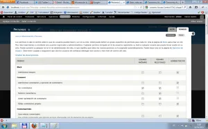 Los dos primeros roles “Usuarios anónimos” y “Usuarios Registrados” aparecen bloqueados para que no podamos cambiarlos, pero sí podemos cambiar los permisos asociados a dichos roles.
