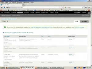 URL: http://drupal.org/project/views Dependencias: ctools Views es un módulo de drupal que permite generar vistas de contenido a través del propio interfaz de drupal. Para empezar a funcionar será necesario acceder al menú de administración al enlace de estructura…