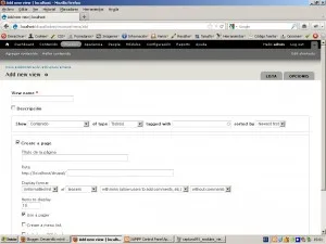 En esta entrega veremos las bases de este módulo, pero es un móduloq ue ofrece multitud de posibilidades, no descarto hacer una entrega sólo para explicar las opciones avanzadas que ofrece. Para empezar plsamos sobre el enlace “Add new View” y así accedemos al formulario de alta de una nueva vista…