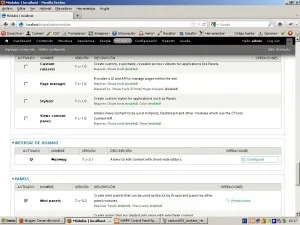 URL: http://drupal.org/project/wysiwyg Dependencias: ninguna Wysiwyg es un módulo de drupal que permite la introducción de contenido mediante varios wysiwyg que están presentes en el mercado. Tras la instalación del módulo pasaremos a la configuración del mismo a través de configuración del módulo, desde el listado de módulos, en la fila de Wysiwyg, pulsamos en el enlace “Configuración”, tal como aparece en la siguienet captura…