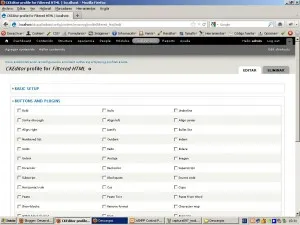 Las distintas opciones para el editor. fundamentalmente resultan interesantes las de “Buttons and Plugins” donde podemos marcar los botones que queremos que aparezcan en ese formato de entrada en concreto. Una vez configurado el Wysiwyg, pulsaremos en el botón “Guardar”. Apareceremos de nuevo en el formulario de selección de editor. si todo ha ido correctamente ahora al introducir un contenido que disponga de algún tipo de formato de entrada, como el body de los artículos, dispondremos de este editor si seleccionamos este tipo de formato de entrada…