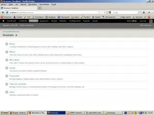 Después de instalarlo, para acceder a la configuración de panels, entraremos a través del menú de Configuración-> Estructura, donde aparecerá un nuevo enlace llamado “Panels”…