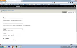 Para instalar y configurar la feature se realiza, inicialmente de la misma manera que se instla un módulo, subiendolo a través del interfaz, o simplemente, descomprimiendo el fichero descargado en el directorio “sites/all/modules”. Para poder realizar correctamente la activación será necesario seguir una serie de pasos: