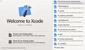 Una vez instalado el Xcode será necesario ponernos manos a la obra con los proyectos de iOS. Para ello, iremos al menú File->New->New Project… y veremos el asistente de nuevo proyecto, o bien al arrancar el Xcode veremos el diálogo principal: