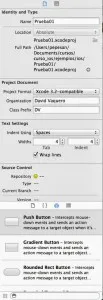 Com podemos ver en la captura hemos seleccionado una de las pestañas del inspector exactamente el “Identity inspector” que es la tercera empezando por la izquierda.