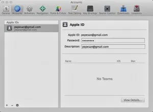En el menú de preferencias de Xcode también tenemos la pestaña de Accounts: