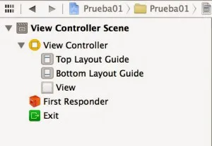 Como podemos ver en la captura tenemos el árbol de elementos que pertenecen a la escena que tenemos seleccionada. Empezando por el View Controller, o controlador de dicha vista o escena. Si pulsamos sobre él: