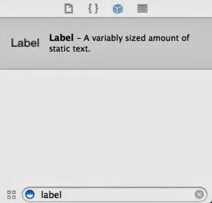 Para ellos una vez seleccionada la escena en el storyboard buscaremos en el Object Library una Label (etiqueta, UILabel). Para ello utilizaremos el campo filtrado que aparece abajo del todo: