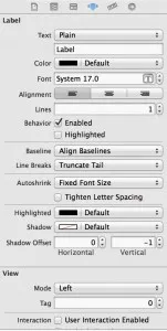 Como se ve en la captura en el Identity Inspector podemos ver que la clase que manejará la label será la UILabel, es decir la clase original del UIKit para las Label.