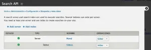 Desde aquí podemos configurar los dos elementos principales del Search API: el servidor y el índice.