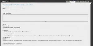 Aquí es donde deberemos colocarle un nombre al índice de contenidos dependiendo de lo que queramos indexar, relacionarlo con un servidor, el que indicamos anteriormente y configurar cuándo debe indexarse el contenido. Normalmente suele recomendarse que se marque la opción Index ítems immediately.