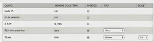 A la derecha debería aparecernos el tipo de indexado, en el tipo de contenido con seleccionar texto sería suficiente ya que internamente utiliza un nombre de sistema o nombre máquina y es o es igual o no lo es. Pero en el resto de campos deberemos seleccionar Fulltext para poder buscar internamente dentro del campo.