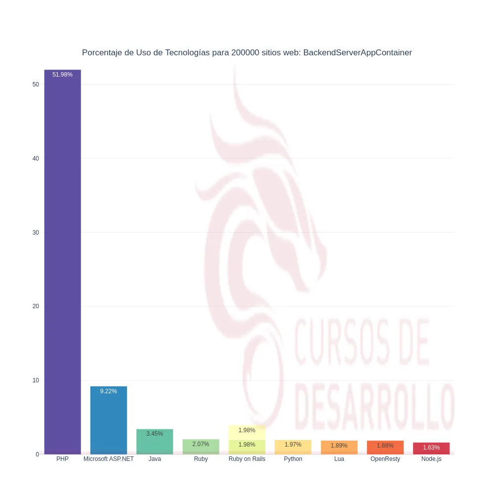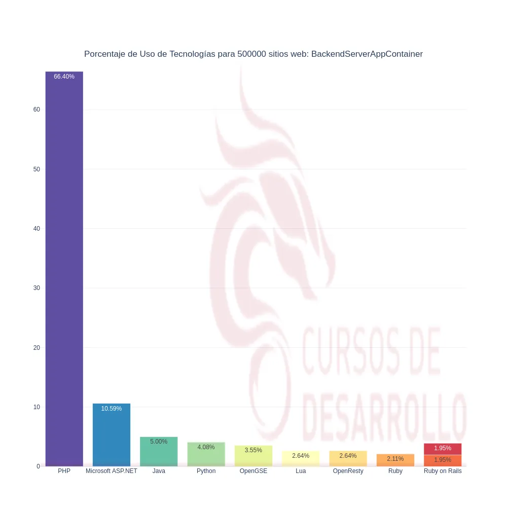 Partiendo de la idea del blog de de Andros, y del post sobre su estudio del uso de Wordpress con un ejemplo de Clojure. He iniciado un proyecto secundario sobre el uso de las tecnologías usadas en las, más de 1.000.000 principales webs de Internet según Alexa y al que he añadido casi dos millones de sitios web con dominios en España. En este caso analizamos los leguajes de Backend más utilizadas y sus porcentajes de uso.