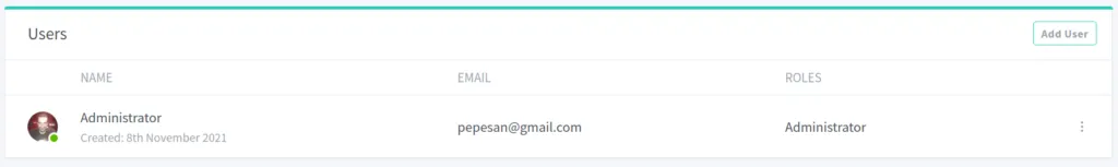Lo primero que debemos hacer es cambiar el usuario en la parte de Users, donde podremos cambiar el email del usario y la contraseña con el menú de tres puntos del final de cada fila de usuario