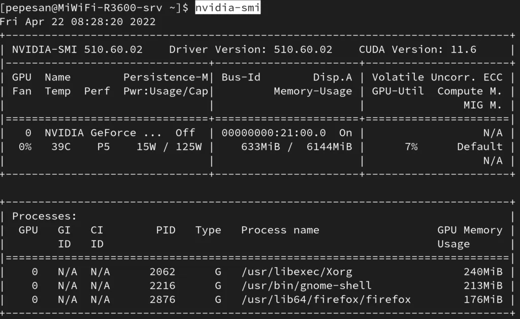 ejemplo de salida del comando nvidia-smi