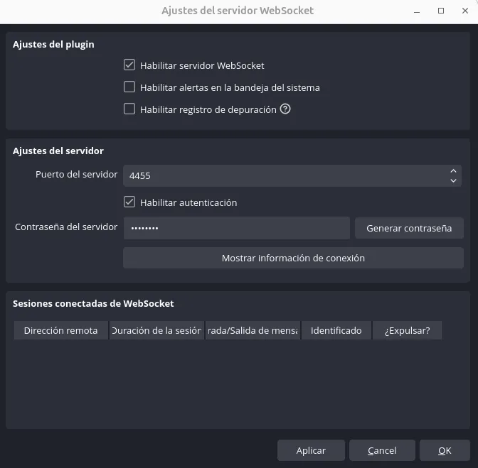 Configuración del entorno websocket en OBS