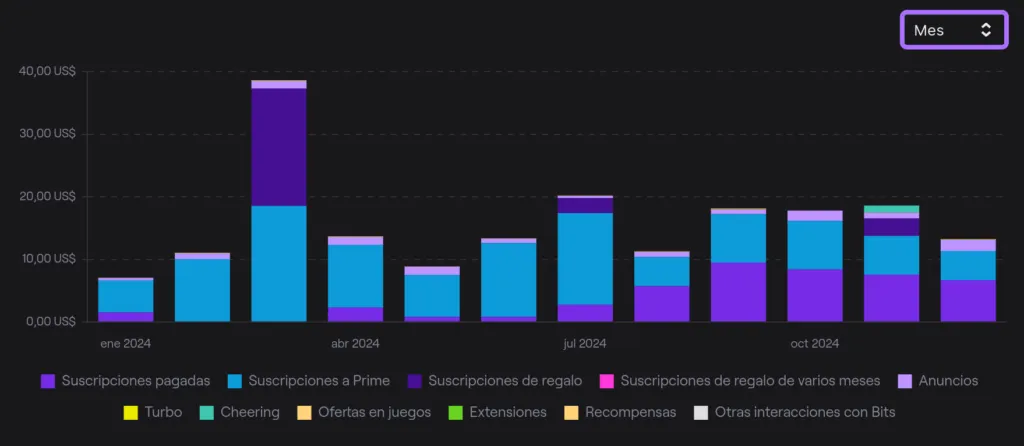 En nuestro caso las subs de primer es lo más estable a lo largo de todo el año y es lo que más compensa, con un media inferior a los 20$ por mes.