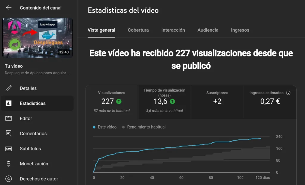 Hemos consiguido subir más de 1700 subs en un sólo año, que para un canal que tiene muchos años y con un total de subs en Youtube, de 3723 a fecha de la escritura de este blog, es una tremenda sorpresa que nos hace seguir con ganas de creando contenido porque estamos, creemos, ayudando a gente a mejorar en su vida profesional.
