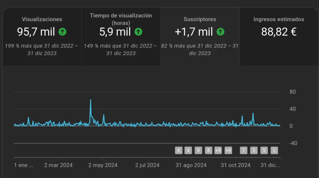 Como todos los años toca hacer balance de las cifras del canal de Youtube, Twitch y los pratrocinios del canal, entonces iremos repasando en esta entrada lo que hemos hecho y conseguido en este año 2024 y hacer un poco de balance hacia los contenidos que generaremos en 2025