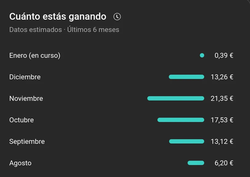 Han sido unos 191,92$ al año de ingresos que no han dado para mucho pero que se agradecen bastante.